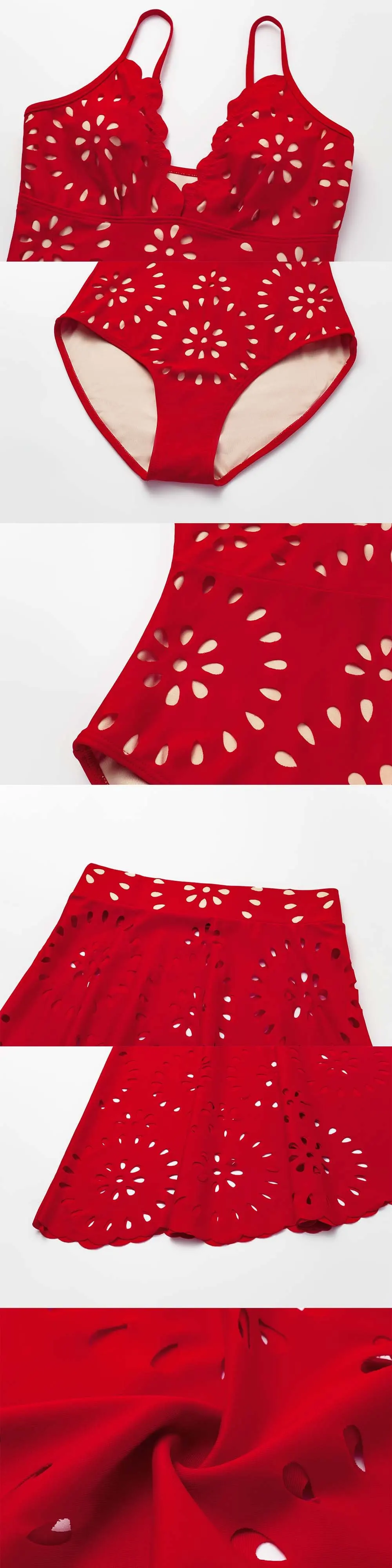 Featuring intricate hollow floral details and a flattering body-hugging silhouette, this swimsuit is both sexy and classy. The high-cut leg design elongates your figure, while the elegant neckline highlights your natural beauty.